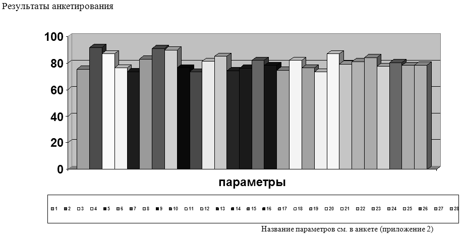 Промежуточные результаты исследования параметров коммуникативной компетентности методом анкетирования представлены таблично в приложение 5 и графически в приложение 6. 3.4 Результаты анализа и интерпретации полученных данных Основной задачей нашего исследования являлось изучение методически значимых параметров коммуникативной компетентности. Мы получили некоторые промежуточные данные по итогам проведения экспертной оценки, фокус - групп и анкетирования. На каждом этапе исследования были выявлены наиболее и наименее значимые параметры коммуникативной компетентности. По итогам проведения сравнительного анализа и интерпретации результатов исследования получается наглядная картина параметров коммуникативной компетентности, являющихся методически значимыми: 1. Умение управлять своим восприятием и организовывать его; правильно оценивать социально-психологический настрой партнёров по общению; 2. Умение вступать в контакт; 3. Умение ясно, четко излагать свои мысли, формулировать вопросы; 4. Умение активно реагировать на изменения обстановки общения, перестроить общение с учётом перемены эмоционального настроя партнёров; 5. Умение разрешать конфликтные ситуации своевременно; 6. Способность изменять направление мысли собеседника. Данный набор параметров мы предлагаем использовать для диагностики коммуникативной компетентности менеджера. Заключение Результаты проведённой работы позволяют сделать следующие выводы: 1. Исходя из того, что в современном обществе возрастает значимость компетентности в общении, выделение параметров для диагностики последней является актуальной проблемой психологии. 2. В данной работе был проведен теоретический анализ различных точек зрения на содержание понятия коммуникативная компетентность, который позволяет сделать вывод, что она представляет собой систему внутренних ресурсов, необходимых для построения эффективного коммуникативного действия в определенном круге ситуаций межличностного взаимодействия. 3. В теории было рассмотрено несколько подходов к описанию параметров коммуникативной компетентности, проанализировав которые, мы разработали анкету для проведения исследования. 4. Было проведено экспериментальное исследование по выделению методически значимых параметров коммуникативной компетентности менеджера. На каждом этапе исследования были получены промежуточные данные, выявлены наиболее и наименее значимые параметры и составлены обобщенные таблицы результатов. 5. По итогам проведения сравнительного анализа и интерпретации результатов исследования получилась наглядная картина параметров коммуникативной компетентности, являющихся методически значимыми. Подводя итог, отметим, что гипотеза, которая была поставлена нами в начале исследования, о существование ряда методически значимых параметров, нашла свое подтверждение. Список литературы 1. Андреева Г.М. Социальная психология. - М.: Аспект Пресс, 1996.– 376с. 2. Базаров Т. Ю. Управление персоналом 3. Бодалева А.А. Психологическое общение. – М.: Изд-во "Институт практической психологии", Воронеж: Н.П.О, "Модек", 1996.-256 с. 4. Василюк Ф.Е. Психология переживания. - М.: Изд-во Моск. ун-та, 1984. 5. Вересов Н.Н. Психология управления, учебное пособие. Москва-Воронеж, 2006. 6. Выханский О.С., Наумов А.И. Менеджмент.- М., Гардарика, 1996. 7. Гавр