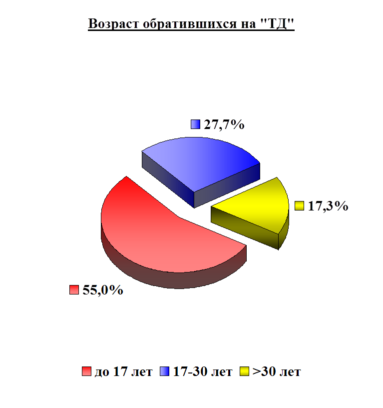Таким образом, проведенное исследование позволяет сделать вывод о том, что тематика обращений на «ТД» зависит от возраста обратившихся.