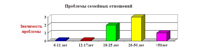 О семейном насилии заявляется редко и часто не напрямую («Муж иногда руки распускает»). Между тем, на остроту этой проблемы указывают косвенные заявления многих женщин (это одна из немногих чисто женских проблем), рассказывающих о своей несчастливой семейной жизни: «После таких «ласк» с ним в постель противно ложиться…»; «На детей совсем внимания не обращает – только орет да кулаками машет…»; «Сын стал хуже учиться – не высыпается из-за пьяных скандалов отца. Иногда приходиться уходить ночевать к соседям…».