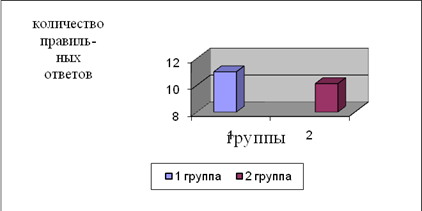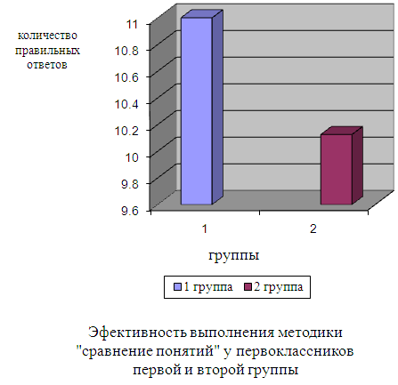 Рис. 5 Эффективность выполнения методики «Сравнение понятий» По методике «Сравнение понятий» у первой группы результаты выше (11%) чем у второй группы (10,13%), что говорит о большем наличии понятийных структур, а, следовательно наличие понятийного мышления (рис.5.).