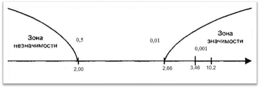Расчет t-критерияСтьюдента для исследования уровня тревожности у учащихся МОУ СОШ № 55 по методике Тейлора адаптация Т. А. Немчинова представлен в таблице 3; t-критерия равен 38,1; число степеней свободы – 56. Для данного числа степеней свободы имеем: