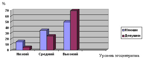 Таблица № 14. Сравнение «индекса эгоцентризма» по методике «Тест эгоцентрических ассоциаций» у юношей и девушек