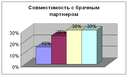 Результаты исследования взаимоотношений супругов по методике «Совместимость с брачным партнером»