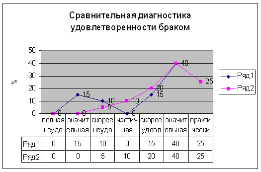 Диаграмма 6. Сравнительная диагностика супружеских отношений по методике «Удовлетворенность браком»
