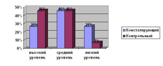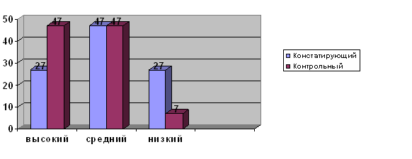Рисунок 1. Динамика изменения уровня целенаправленности ПРИЛОЖЕНИЕ 6 Таблица 1. Сводная таблица результатов констатирующего эксперимента