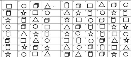 Рисунок 12 ПРИЛОЖЕНИЕ 8Протоколы (констатирующий эксперимент) Протокол №1 Имя ребенка: Настя Б. Возраст: 6 лет Дата: 06.02.07 Методика 1. Корректурная проба. 1. буквенный вариант Результат объема внимания - 372 знака Пропущено – 14 букв. уровень объема внимания – средний уровень концентрации внимания - средний 2. рисуночный вариант Результат объема внимания - 384 знака. Пропущено а) 3 знака б) 2 знака в) 1 знак г) 3 знака д) 3 знака Всего пропущено 12 знаков уровень объема внимания – средний уровень концентрации внимания - средний Методика 2. Красно-черная таблица Т(1)=24 сек. Т(2)=37 сек. Т(3)=80 сек. Показатель переключаемости внимания =19 сек. Уровень переключаемости внимания - высокий Методика 3. Определение концентрации и распределения внимания. 6 пропусков звездочек. Уровень концентрации – 7 баллов (средний) Пропущен 1 круг, 1 треугольник. Уровень переключаемости внимания – 9 баллов (высокий). Задание выполнялось самостоятельно, без отвлечений. Методика 4. Определение уровня развития целенаправленности Пазл «Лиса и журавль» Кол-во отвлечений – 2 Время выполнения – 20 мин. Уровень активности и самостоятельности – средний. Уровень развития целенаправленности – малоактивная целенаправленность. Уровень развития произвольного внимания – средний уровень. Протокол №2 Имя ребенка: Костя А. Возраст: 6 лет Дата: 06.02.07 Методика 1. Корректурная проба. 1. буквенный вариант Результат объема внимания - 324 знака Пропущено – 18 букв. уровень объема внимания – низкий уровень концентрации внимания - низкий 2. рисуночный вариант Результат объема внимания - 337 знака. Пропущено а) 4 знака б) 4 знака в) 4 знака г) 4 знака д) 3 знака Всего пропущено 19 знаков уровень объема внимания – низкий уровень концентрации внимания - низкий Методика 2. Красно-черная таблица Т(1)=46 сек. Т(2)=56 сек. Т(3)=131 сек. Показатель переключаемости внимания =29 сек. Уровень переключаемости внимания - низкий Методика 3. Определение концентрации и распределения внимания. 10 пропусков звездочек. Уровень концентрации – 5 баллов (низкий) Пропущено 7 кругов, 5 треугольников. Уровень переключаемости внимания – 4 баллов (низкий). Задание выполнялось с помощью воспитателя, 3 отвлечения. Методика 4. Определение уровня развития целенаправленности Пазл «Вершки-корешки» Кол-во отвлечений – 6 Время выполнения – 23 мин. Уровень активности и самостоятельности – низкий. Уровень развития целенаправленности – нестойкая целенаправленность. Уровень развития произвольного внимания – низкий уровень. Протокол №3 Имя ребенка: Ксюша М. Возраст: 7 лет Дата: 06.02.07 Методика 1. Корректурная проба. 1. буквенный вариант Результат объема внимания - 319 знаков. Пропущено – 23 буквы. уровень объема внимания – низкий уровень концентрации внимания - низкий 2. рисуночный вариант Результат объема внимания - 321знак. Пропущено а) 4 знака б) 4 знака в) 5 знаков г) 4 знака д) 4 знака Всего пропущено 21 знак уровень объема внимания – низкий уровень концентрации внимания - низкий Методика 2. Красно-черная таблица Т(1)=46 сек. Т(2)=67 сек. Т(3)=141 сек. Показатель переключаемости внимания =28 сек. Уровень переключаемости внимания - низкий Методика 3. Определение концентрации и распределения внимания. 8 пропусков звездочек. Уровень концентрации – 6 баллов (низкий) Пропущено 4 круга,6 треугольников. Уровень переключаемости внимания – 5 баллов (низкий). Задание выполнялось с помощью воспитат