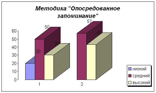 Рис.3. Результаты диагностики опосредованного запоминания Для того, чтобы наглядно сравнить результаты диагностики памяти по всем трем методикам, мы построили сводную диаграмму (см.рис.4).