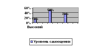 Рис. 4 - Результаты уровня самооценки по тесту «Какой я?» самооценка самосознание ребенок дошкольный При содержательном анализе полученных рисунков, необходимо отметить следующее. Рисунки детей с высоким уровнем самооценки отличались большими размерами фигур, пропорциональностью, хорошо прорисованными деталями, фигура на листе была расположена высоко. Рисунки выполнены в соответствии с нормами психического развития детей данного возраста. Увеличенный по отношению к фигуре в целом размер головы, лицо повернуто в фас. На лице хорошо прорисованы глаза, рот, нос, уши. Рисунки детей со средним уровнем самооценки отличались средними размерами фигур, не всегда соблюдалась пропорциональность, не всегда прорисовывались деталями рисунков. В целом рисунки выполнены в соответствии с нормами психического развития детей данного возраста. Размер головы средний, лицо повернуто чаще всего, влево. На лице недостаточно хорошо прорисованы глаза, рот, нос, уши. Рисунки детей с низким уровнем самооценки отличались маленькими размерами изображения своей фигурки, у них была нарушена пропорциональность, детали не всегда прорисованы. В целом рисунки выполнены не в соответствии с нормами психического развития детей данного возраста. Таблица 8 Результаты исследования самооценки по тесту «Рисую себя»