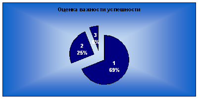 2.4 Анкетирование Для проведения исследования успешности была самостоятельно составлена анкета (см. Приложение 2). Успешны они или нет, респонденты оценивали себя сами. Анкета состоит из 24 вопросов. Вопросы, имеющиеся в конкретном психологическом исследовании, являются разными по своим формулировкам. Вопросы носят закрытую, открытую форму, также имеются косвенные вопросы. Закрытый вопрос, предполагает два варианта ответа: да или нет: Вам нравится добиваться успеха в карьере? Открытый вопрос предполагает множество вариантов ответа: Если бы Вас перестали ценить на работе, что бы вы сделали? Косвенный вопрос: Хотели бы Вы улучшить своё материальное положение? Такой широкий выбор формулировок вопросов имеет своей целью сбор максимально полной, адекватной, точной и достоверной информации. Некоторые из вопросов анкеты направлены на выяснение сознательных установок респондентов, некоторые - бессознательных, а какие то вопросы, имели своей целью выяснить установки общественного сознания. Предполагаемая форма выборки: В данном конкретном исследовании мы исходили из того, что в психологии основой выборки называют перечень элементов генеральной совокупности, и он должен соответствовать требованиям: полноты, точности, адекватности, удобства работы с ними и отсутствия дублирования единиц наблюдения. Задачи, которые ставятся в рамках второй части психологического исследования: 1. Какое место в жизни современного человека занимает успех? Какую роль он играет в жизни людей? 2. Степень влияния самооценки на успешность человека: 3. Каким себя респондент оценивает сам - успешым или нет? Этим вопросом, ставилась задача выяснить, внеший или внутренний локус контроля у человека. 4. По каким параметрам человек оценивает свою, а так же чужую успешность успешность? Всвязи с ответами полученными у респондентов отнсительно успеха и того как они его понимают можно сделать следующие выводы: успех занимает довольно большое место в жизни людей в современной Эстонии 69% респондентов считатют, что быть успешным очень важно, 25% ответило что они не задумывались над этим вопросом и 6% ответило, что успешность им совершенно не важна.