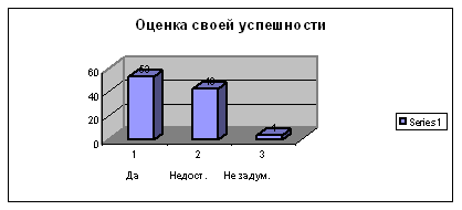 И 57% респондентов видит связь между высокой самооценкой и дальнейшей успешностью в жизни, 19% отметили, что такой связи нет, 22% отметило, что если самооценка и влияет на успешность то незначительно. К сожалению количество респондентов оценивающих себя как успешных составляет лишь 53%, при этом довольно большой процент 43% оценивают себя как недостаточно успешных, хотя эти данные можно рассмотреть и с той точки зрения, что люди видят для себя дальнейшую перспективу роста и 4% не задумываются об успешности.