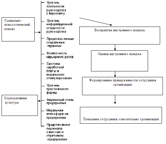 Дипломная работа: Внутрикорпоративный имидж и его влияние на приверженность сотрудников организации на примере ООО "Милко"Дипломная работа: Внутрикорпоративный имидж и его влияние на приверженность сотрудников организации на примере ООО "Милко"Внутрикорпоративный имидж и его влияние на приверженность сотрудников организации на примере ООО "Милко" Дипломная работа Содержание Введение Глава 1. Теоретические основы для исследования влияния внутрикорпоративного имиджа на приверженность сотрудников организации1.1 Определение понятия имиджа организации 1.2 Определение понятия приверженности 1.3 Использование средств Public Relations в формировании внутрикорпоративного имиджа Глава 2. Исследование внутрикорпоративного имиджа и приверженности сотрудников ООО "Милко"2.1 Описание инструментов Public Relations для построения внутрикорпоративного имиджа в ООО "Милко" 2.2 Исследование внутрикорпоративного имиджа ООО "Милко" 2.3 Исследование приверженности сотрудников ООО "Милко" Глава 3. Проект для улучшения информированности о компании для сотрудников ООО "Милко"3.1 Подготовка и обоснование проекта 3.2 Проект для улучшения информированности о целях, ценностях и деятельности компании "Милко" Заключение Список литературы Введение Последнее десятилетие ознаменовалось для России бурными переменами в политической жизни и экономическом укладе. На смену прежним механизмам хозяйствования и управления приходят новые, рыночные, и это во многом определяет успешность деятельности руководителей и коллективов.. В этих обстоятельствах особенно остро стоит вопрос о соотношении индивидуальных и коллективных форм хозяйствования и управления. С одной стороны, фигуры предпринимателя и управленца выступают во всем богатстве индивидуалистических ценностей, с другой - современные бизнес и управление, особенно в тех случаях и там, где масштабы превышают уровень мелкого производства и коммерции, невозможны без группы единомышленников, либо, по меньшей мере, людей, добровольно работающих на лидера. И это положение требует внимательного отношения к коллективным и коллегиальным формам ведения бизнеса и организации управленческой деятельности. В связи с этим в настоящее время большую актуальность приобретают вопросы формирования корпоративного имиджа, корпоративной культуры и духа на предприятии. Важнейшую роль в этом процессе играют различные средства коммуникационных стратегий, наиболее значимыми из которых являются средства паблик рилейшнз. Паблик рилейшнз, понимаемые как связи с общественностью, составляют важнейший элемент экономических отношений в любых видах экономического поведения - производстве, маркетинге, торговле, инвестиционной деятельности, общении с потребителями и в особенности в управлении. Актуальность исследования коммуникаций в системе паблик рилейшнз возрастает в связи с необходимостью решения проблем управления предприятием в новых условиях. Очевидна взаимозависимость коммуникативных систем, адресованных к внутренним службам предприятия, персоналу, менеджерам, и коммуникаций предприятия во внешней среде - с партнерами, финансовыми структурами, администрацией региона и т.п. в силу включенности этих процессов в общие социально-экономические системы, восходящие, в конечном счете, к базовым ценностям организационной 