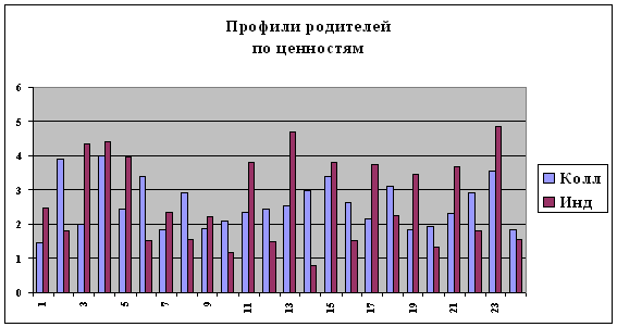 1. Вербализация 2. Оберегание от трудностей 3. Ограничение ролью хозяйки 4. Подавление воли ребенка 5. Жертвенность родителей 6. Страх причинить вред ребенку 7. Супружеские конфликты 8. Строгость родителей 9. Раздражительность 10. Зависимость ребенка от матери 11. Поощрение зависимости ребенка от родителей 12. Подавление агрессивности 13. Мученичество родителей 14. Равенство родителей и ребенка 15. Поощрение активности ребенка 16. Избегание общения с ребенком 17. Невнимательность мужа к жене 18. Подавление сексуальности ребенка 19. Власть матери 20. Навязчивость родителей 21. Товарищеские отношения между родителями и детьми 22. Ускорение развития 23. Необходимость посторонней помощи Приложение 5 (результаты по ценностным ориентациям)