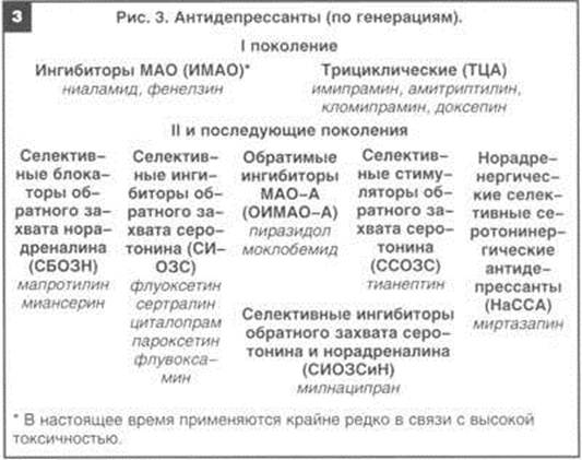 совместимых между собой антидепрессантов современных генераций; на третьем