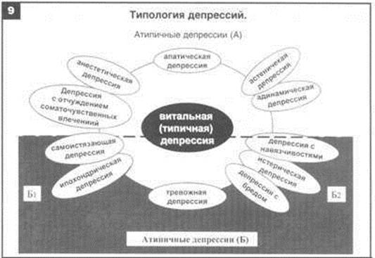 тревожная, ипохондрическая, самоистязающая депрессия; Б2 - депрессии, при