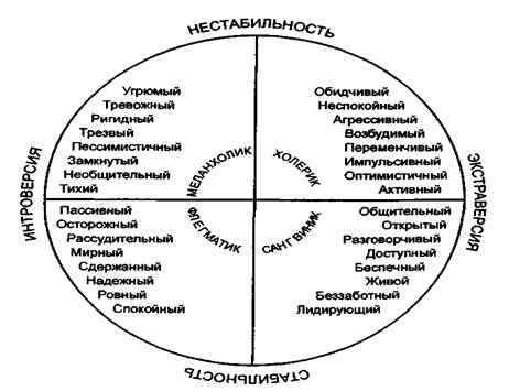 На підставі отриманих|одержувати| даних роблю висновок|укладення|. Людина, яка була опитана мною, має надто низький рівень екстраверсії (Е = 3), тобто є глибоким інтровертом (меланхоліком), також має дуже високий рівень нейротизму (Н = 19), тобто є глибоким нейротиком. Ця ж людина щира у своїх відповідях (Б = 2) і не демонструє свою поведінку на соціальне схвалення. Я раджу опитаному більше спілкуватися з людьми, розширити коло друзів, менше нервувати через дрібниці, не брати близько до серця неприємності та невдачі. Контрольні питання 1.Який основний зміст екстраверсії і інтроверсії? У загальному сенсі екстраверсія — це спрямованість особистості на навколишніх людей і події. Ще екстраверсію можна буквально розуміти як "вихід з себе", "показ себе зовнішньою стороною". Екстраверт, важче виробляє умовні рефлекси, володіє більшою терпимістю до болю, але меншою терпимістю до сенсорної депривації, унаслідок чого не переносить монотонності, частіше відволікається під час роботи і тому подібне. Типовими поведінковими проявами екстраверсії є товариськість, імпульсність, недостатній самоконтроль, хороша пристосовність до середовища, відвертість у відчуттях. Він чуйний, життєрадісний, упевнений в собі, прагне до лідерства, має багато друзів, нестриманий, прагне до розваг, любить ризикувати, дотепний, не завжди обов'язковий. Інтроверсія — спрямованість особистості на її внутрішній світ. Інтроверсія є прямою протилежністю екстраверсії, приблизно так, як два поняття в діалектиці. У інтроверта переважають наступні особливості поведінки: він часто занурений в себе, зазнає труднощі, встановлюючи контакти із людьми і адаптуючись до реальності. В більшості випадків інтроверт спокійний, урівноважений, миролюбний, його дії продумані| і раціональні. Коло друзів у нього невелике. Інтроверт високо цінує етичні норми, любить планувати майбутнє, замислюється над тим, що і як робитиме, не піддається моментальним спонукам, песимістичний. Інтроверт не любить хвилювань, дотримується заведеного життєвого порядку. Він строго контролює свої відчуття і рідко поводиться агресивно, обов'язковий. 2.Що розуміється під нейротизмом Нейротизм у буквальному розумінні слова означає тривожність, емоційну нестабільність та неврівноваженість, напруженість, депресивність. На ранніх етапах нейротизм може не мати нічого спільного з нервовими та психічними розладами, проте, якщо нейротик сам не змінить своєї поведінки, або йому вчасно не підкажуть, як і що треба зробити, як результат проявляються нервові захворювання, іноді з тяжкими наслідками не лише для нервової, а й для серцево-судинної системи (інсульт та інфаркт міокарду). У нейротизмі, як і в діалектиці, виділяють два протилежних полюси. На одному полюсі нейротизму (високі оцінки) знаходяться так звані нейротики, які відрізняються нестабільністю, неврівноваженістю нервово-психічних процесів, емоційною нестійкістю, а також лабільністю вегетативної нервової системи. Тому вони легко збуджуються, для них характерні мінливість настрою, чутливість, а також тривожність, недовірливість, повільність, нерішучість. Інший полюс нейротизму (низькі оцінки) — це емоційно-стабільні особи, що характеризуються спокоєм, врівноваженістю, упевненістю, рішучістю. 3. На основі «кола Айзенка» опишіть, чим відрізняється холерик-екс