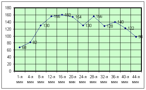 Контрольная работа: Метрологический контроль средств физической реабилитацииКонтрольная работа: Метрологический контроль средств физической реабилитацииКонтрольная работа «Метрологический контроль средств физической реабилитации» Вариант № 2 1. Исследовать и описать принцип действия одной из измерительных систем или прибора комплексных измерений функционального состояния человека спортсмена. 2. Описать методику контроля уровня развития двигательных способностей: быстроты и гибкости. 3. Построить график динамики частоты сердечных сокращений учащихся на уроке физического воспитания по результатам хронометража: - на первой минуте-68 уд/мин., четвёртой -82, восьмой -130, двенадцатой -156, шестнадцатой -160, двадцатой -154, двадцать четвёртой -130, двадцать восьмой -156, тридцать второй -128, тридцать шестой -140, сороковой -122, сорок четвёртой -98 уд/мин. 4. Построить профиль физической подготовленности двух физкультурников по результатам, показанных в тестах: на выносливость – первый-20 очков, второй-35; силу – 38, 27 очков соответственно; скоростно-силовые качества – 47, 30 очков; быстроту – 20, 40 очков; ловкость – 16, 36 очков; гибкость – 12, 20 очков. 5. Построить диаграмму соотношения показателей уровня физического развития в группе исследуемых: - с высоким показателем -10%; выше среднего – 15%; средним – 25%; ниже среднего – 30%; низким -20%. 1. Исследовать и описать принцип действия одной из измерительных систем или прибора комплексных измерений функционального состояния человека спортсмена Фонокардиография. Фонокардиография (ФКГ) — графический метод исследования тонов и шумов, возникающих в сердце при его работе. ФКГ оказывает существенную помощь при диагностике пороков сердца. Этот метод исследования позволяет судить также о сократительной функции миокарда, функции проведения, динамике давления в полостях сердца и сосудов. Запись ФКГ ведется с помощью аппарата, основными узлами которого являются микрофон, усилитель с фильтрами и регистрирующее устройство. При записи звуков сердца микрофон устанавливают над различными точками области сердца, которые являются стандартными при выслушивании. На ФКГ звукам сердца соответствуют колебания различной амплитуды и частоты. Амплитуда этих колебаний позволяет судить о громкости звуков, а число колебаний за определенное время — о частоте тонов или шумов сердца. С помощью ФКГ изучают характер звука во времени (длительность тонов и шумов, интервалы между отдельными группами звуковых колебаний, местоположение шумов в сердечном цикле и т. д.). Нормальная фонокардиограмма состоит из двух постоянных групп колебаний —I и II тонов сердца и нередко двух дополнительных III и IV тонов. I тон сердца начинается через небольшой интервал времени после начала зубца Q ЭКГ. Основную роль в его образовании играют колебания клапанного аппарата сердца. II тон сердца слегка опережает или несколько запаздывает по отношению к началу зубца Т ЭКГ. Появление этого тона связывают с напряжением клапанов аорты и легочной артерии. III тон возникает в ранней диастоле. Его происхождение связано с колебаниями стенки желудочков во время быстрого наполнения их кровью. IV тон сердца регистрируется вскоре после начала зубца Р ЭКГ во время систолы предсердий, в конце диастолы желудочков. У здоровых спортсменов во время физической нагрузки, при пр
