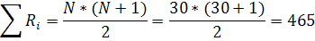 Общая сумма рангов: 198,5 + 266,5 = 465. Расчетная сумма: