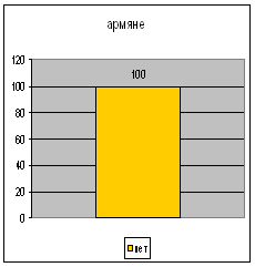 Рисунок 10. Наличие у респондентов среди родственников представителей различных этнических групп. 100% опрошенных дали ответ «нет» на вопросы о наличии среди их родственников представителей азербайджанской, армянской или чеченской этнической группы (рис.10).