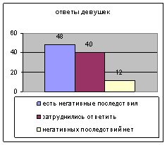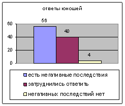 Рисунок 34. Мнение респондентов о негативных последствиях от иммигрантов. Большинство респондентов считают, что от иммиграции представителей различных этнических групп есть какие-либо негативные последствия – 56% юношей и 48% девушек. Затруднились ответить 40% юношей и девушек (рис. 34).
