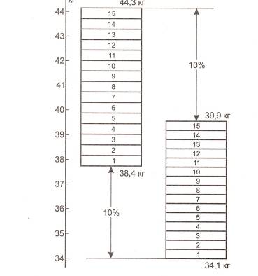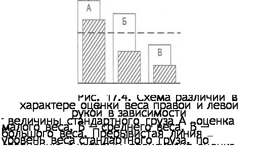 Рис. Схема, объясняющая возникновение временной леворукости по силе мышц Выносливость к динамической работе и статическим усилиям по единодушным выводам ряда авторов (В. В. Скрябин, 1956; И. М. Яблоновский, 1949; Ф. Хеллебрандт и С. Хаутц [F. Hellebrandt, S. Hautz, 1950]) одинакова на обеих руках. Объясняется это тем, что она измерялась с учетом имеющихся различий в силе и частоте движений обеих рук (например, на уровне 50 % максимальной силы как правой, так и левой руки). Если бы для той и другой руки задавалось бы одно и то же абсолютное усилие или частота движений, то результаты, очевидно, были бы другими — в пользу правой руки. Функциональная асимметрия в целостных двигательных актах, где проявляется и координированность человека, во многом определяется сложностью их структуры. По Ф. Хеллебрандту (F. Hellebrandt, 1951), эффективность обеих рук в выполнении различных действий различна. Копирование осуществляется обеими руками практически одинаково (различие — 2 % в пользу правой руки). Черчение осуществляется лучше правой рукой уже на 16 %, а прокалывание — на 19 %. Такая же операция, как пунктирование, делается правой рукой почти в два раза эффективнее (на 96 %). Насколько степень асимметрии зависит от структуры двигательных действий, можно судить и по данным, приведенным Г. Регенером (G. Regener, 1961). Автор измерял скорость толчков и бросков мяча ватерполистами. Вычисления из его данных показывают, что при толчке разница между руками составила 35 %, а при броске — 102 % (в обоих случаях в пользу правой руки у правшей). По данным Е. Г. Леви-Гориневской (1937), дальность бросков различных снарядов правой рукой превышает таковую левой рукой на 30-50 %, причем у мальчиков асимметрия выражена больше, чем у девочек (Н. А. Лупандина, 1949). Из данных Р. И. Тамуриди (1947) следует, что и у мальчиков, и у девочек точность бросков правой рукой выше, чем левой, на 35 %. Таким образом, степень выраженности асимметрии в целостных двигательных актах выше, нем при измерении отдельных двигательных качеств. Если у большинства исследователей превалирование правой руки у правшей и левой руки — у левшей по силе и скоростным показателям сомнений не вызывает, то в отношении точности движений по пространственным и силовым параметрам такого единодушия не наблюдается. ВЫЯВЛЕНИЕ ПРАВО-ЛЕВОРУКОСТИ ПО ТОЧНОСТНЫМ ХАРАКТЕРИСТИКАМ (ПРОПРИОРЕЦЕПЦИИ) Точность движений обеих рук в пространстве. В физиологической и психологической литературе утвердилось мнение, что пространственная точность движений правой рукой выше, чем левой (Е. Делабарре [Е. Delabarre. 1891 ]; Д. Я. Богданова, 1962 и др.). Однако имеются и другие данные. Например, Г. М. Гагаева (19591 нашла, что если для обеих рук задавать для воспроизведения одинаковые амплитуды, то точнее бывает то правая рука, то левая. Причина этих противоречий была выяснена в следующем эксперименте (Е. П. Ильин, 1966). Вначале испытуемые сами выбирали такую амплитуду движений (на кинематометре Жуковского), которая им нравилась. Затем им задавались для воспроизведения малая (20 угловых градусов) и большая (75 угловых градусов) амплитуды. Произвольно выбранные испытуемыми амплитуды занимали промежуточное положение между матой и большой амплитудами и воспроизводились точнее всего. Поэтому их следует считать оптимальными. Оказалось, что при всех заданных протяженностях движений воспроизведенные право
