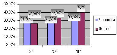 Рис.2.1. Розподіл значень згідно методики діагностики спрямованості особистості Б. Басса психологічний конфлікт міжособистісний підлітковий Таким чином, за результатами цього тесту видно, що спрямованість на себе "Я" більш поширена серед хлопчиків, а щодо спрямованості на справу і спрямованості на спілкування, то результати розподілились порівну у кількісному значенні і переважають дівчатка у процентному співвідношенні, оскільки серед тестованих хлопчиків більше. Розглянемо цей висновок графічно.