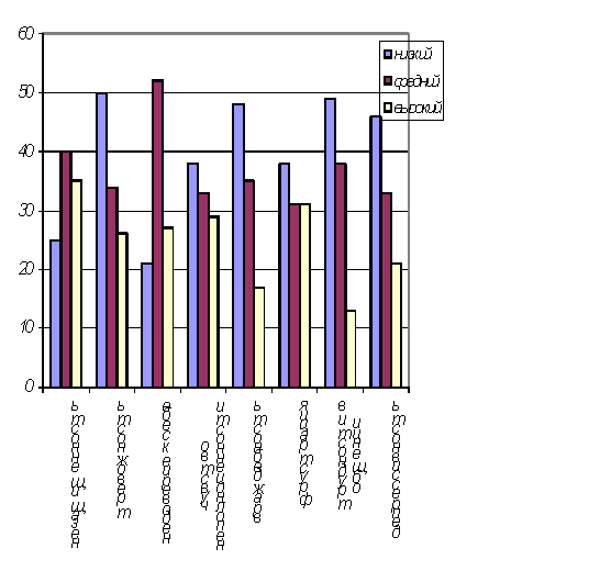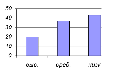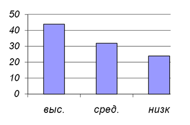 Рисунок 4 - Процентное соотношение уровня агрессивности По рисунку мы видим, что преобладает высокий уровень агрессивности. Т.е. для детей из детского дома, характерно склонность к соперничеству, напористость, желание превзойти других, раздражительность, сниженный или повышенный самоконтроль.