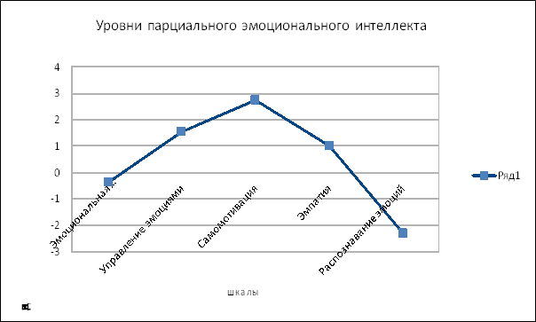 Комментарии: на данном графике представлены результаты по методике Копинг-тест Лазаруса, в основной группе. По горизонтали мы видим – название оси «копинг-механизмы», по вертикали – «среднее значение». Это означает, что на данном графике отображены результаты по каждому показателю методики, численно представлены средние значения в основной группе. Синим цветом обозначена основная группа. В результате подсчета полученных данных по методике «Диагностика эмоционального интеллекта» можно говорить о низком уровне эмоционального у испытуемых основной группы.