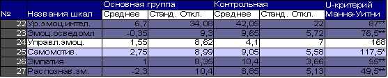 Средние значения и стандартные отклонения, полученные в исследуемых группах по методике ИТТ *различия достоверны, при р≤0,05