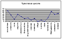 Вывод: внимание устойчивое, объём в пределах нормы. Испытуемый №2 Дата опроса: 15.09.2008 Пол: жен. Возраст: 8 лет 1. Опросник «Чувства в школе»