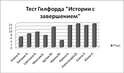 Таблица 2. Тест Дж. Гилфорда и М. Салливена "Истории с завершением"