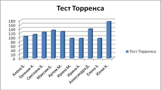 Рис.2 В ходе проведения данной методики было выявленно, что показатели социального интеллекта значительно сниженны и только небольшой процент старшеклассников имеет показатели выше норма или в ее пределах. Таблица 3. Творческий тест Торренса (вербальный)