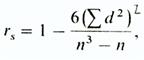 Коэффициент корреляции рангов Спирмена (rs) - это непараметрический показатель, с помощью которого пытаются выявить связь между рангами соответственных величин в двух рядах измерений. Этот коэффициент рассчитывать проще, однако результаты получаются менее точными, чем при использовании r. Это связано с тем, что при вычислении коэффициента Спирмена используют порядок следования данных, а не их количественные характеристики и интервалы между классами. Дело в том, что при использовании коэффициента корреляции рангов Спирмена (rs) проверяют только, будет ли ранжирование данных для какой-либо выборки таким же, как и в ряду других данных для этой выборки, попарно связанных с первыми. Если коэффициент близок к+1, то это означает, что оба ряда практически совпадают, а если этот коэффициент близок к -1, можно говорить о полной обратной зависимости. Коэффициент rs вычисляют по формуле