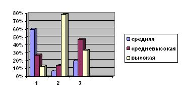 Анализ таблицы 2 показал. уровень реальной самооценки среди испытуемых: - средняя – 7 человек (60%); - средневысокая – 2 человек (27%); - высокая – 1человека (13%). уровень идеальной самооценки среди испытуемых: - средняя – 1 человек (7%); - средневысокая – 2 человека (14%); - высокая – 12 человека (79%). уровень достижимой самооценки среди испытуемых: - средняя – 2 человека (20%); - средневысокая – 5 человек (33%); - высокая – 3 человек (47%).