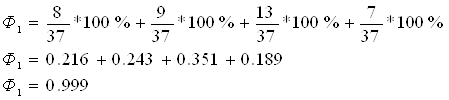 где Ф 1 – формула темперамента (интегральный темперамент); А – общее число плюсов по всем типам темперамента; Ах – общее число плюсов в «паспорте» холерика; Ас – общее число плюсов в «паспорте» сангвиника; Аф – общее число плюсов в «паспорте» флегматика; Ам – общее число плюсов в «паспорте» меланхолика. Исходя из опросника, заполненного Виталей, мы имеем следующее: