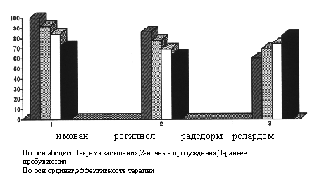 Реферат: Депрессии, протекающие с соматовегетативными расстройствамиРеферат: Депрессии, протекающие с соматовегетативными расстройствамиЕ.В. Зеленина Отечественные и зарубежные авторы традиционно рассматривают депрессию в неразрывном единстве психических и соматовегетативных расстройств. В соответствии с диагностическими принципами международной классификации психических заболеваний последнего пересмотра (МКБ-10) в рамках депрессий наряду с подавленным настроением, утратой интересов, сниженной самооценкой, идеями виновности и уничижения выделяют соматический (“витальный”, “биологический”, “эндогеноморфный”) синдром, включающий нарушения сна (пробуждение по утрам за 2 ч или более до обычного времени), утрату аппетита, потерю массы тела (5% в течение последнего месяца), выраженное снижение либидо. При этом подчеркивается, что соматические симптомы могут присутствовать в клинической картине депрессий различной степени тяжести, а в случаях атипичной гипотимии являться основным диагностическим критерием. К наиболее типичным соматовегетативным проявлениям депрессии относят нарушения сна. Еще Аретей Каппадокийский во II в. н.э. описывал больных депрессией как “печальных, унылых и потерявших сон”. E.Kraepelin (1910) отмечал, что сон у таких пациентов носит поверхностный характер и сопровождается частыми, длительными пробуждениями. J. Glatzel (1973) считал, что “разорванный сон” или раннее пробуждение наряду со снижением побуждений и уменьшением способности к эмоциональному резонансу может быть выражением депрессии даже при отсутствии тоскливого настроения. По данным литературы, из каждых 500 больных с эндогенными депрессиями на расстройства сна жалуется 99,6%, а из 1000 – 83,4%, причем в 2% случаев агрипнические проявления предшествуют другим симптомам заболевания. При изучении соматовегетативных расстройств в рамках так называемых мягких, легких, атипичных форм депрессивных состояний было отмечено, что клиническая картина заболевания характеризуется доминированием соматических симптомов и нарушений вегетативной нервной системы, которые могут полностью перекрывать лежащую в их основе депрессию. Для квалификации такого рода депрессивных состояний наиболее часто употребляют термины “маскированная депрессия”, “ларвированная депрессия”, “скрытая депрессия”, “депрессия без депрессии”, “соматизированная депрессия”, “аффективные эквиваленты”, “вегетативная депрессия”, “депрессивные эквиваленты” и т.д. Сравнительная эффективность препаратов гипнотического действия.