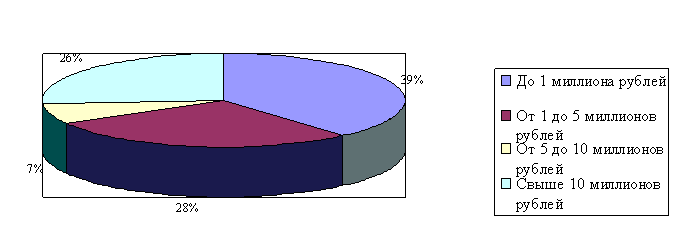 Рисунок 3 - Численность работников рассматриваемых предприятий Исходя из анализа таблицы в Приложении Г, можно сказать, что наибольшее число респондентов было опрошено на предприятиях с годовой прибылью до 1 миллиона рублей, что составило 39 %, а наименьшее число – предприятия с доходом от 5 до 10 миллионов рублей – 7 %. Следует отметить, что на данный вопрос анкеты ответило лишь 48 % опрошенных. Графическое представление данных таблицы изображено на рисунке 4.