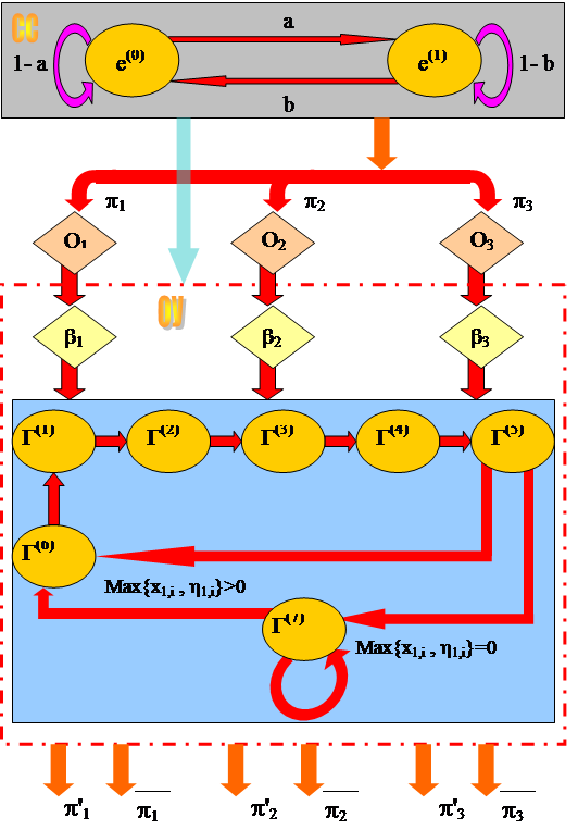Применяя формулу полной вероятности и принятые в данной модели основные свойства ее случайных элементов, получим: