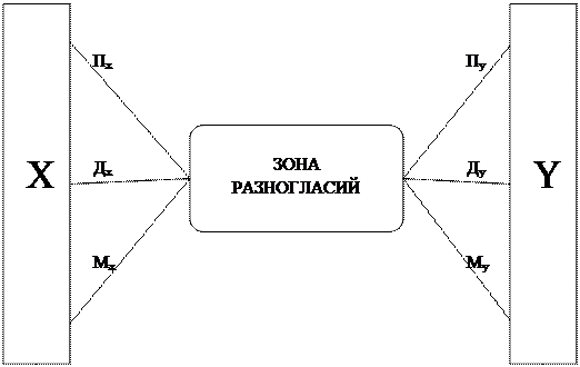 где: х, у – конфликтующие стороны; П – представления; М – мотивы; Д – действия. Схема 2. Структура конфликта. Конечно, эта схема представляет конфликт в сильно упрощенном виде. В ней, например, не нашлось места другим возможным участникам конфликта, кроме конфликтующих сторон. Не учитывает она и наличие разнообразных воздействий внешних обстоятельств на все элементы конфликтной ситуации. Но, тем не менее, эта схема может служить своего рода путеводителем по конфликту. Перейдем непосредственно к вражде Мария и Суллы. Конфликт налицо. Проанализируем эту ситуацию. Оказывается определить компоненты конфликта здесь не так уж просто. Самое простое – установить, какие действия здесь наблюдаются. Они таковы (в хронологическом порядке): - Сулла получает Югурту что вызывает зависть консула Мария; - Сулла возвышается; - Сулле воздвигаются статуи, Марий хочет силой сбросить их; город делится на две части: за Мария и за Суллу; - в Союзнической войне Марий не оправдывает ожиданий народа, и консулом избирают Суллу; - Марий снова выдвигает свою кандидатуру на почетный пост консула; - общество раскалывается: часть римлян за Мария, другая за Суллу; - Марий организует мятеж, изгоняет Суллу из города; - Сулла завоевывает Рим; - Марий бежит и скитается; - Сулла уезжает на войну с Митродатом; - Марий захватывает Рим; - Мария избирают консулом; - Марий умирает; - Сулла захватывает Рим. Далее, кто является конфликтантами – «х» - «у»? Оказывается на этот вопрос однозначно ответить нельзя. Разберемся сначала с одной стороной. Вначале недовольство создавшимся положением выразил Марий. Он стал конфликтующей стороной – скажем «х». Но по мере развития конфликта к нему присоединились другие люди (такие как, например, Сульпиций или сын Мария Марий-младший), и все они стали представлять сторону «х». Как видно, по ходу дела конфликтующая сторона может изменяться. А кто же в данной ситуации выступает в качестве «у» - другой конфликтующей стороны? Видимо Сулла. Ведь Марий был недоволен именно его удачами и успехами. Значит, Сулла стал конфликтантом, еще ничего не зная об этом. Ситуация стала конфликтной без его ведома, лишь в силу того, что Марий определил ее, как конфликтную (вспомните теорему Томаса). Так же как и к Марию, к нему постепенно присоединились сторонники. Кроме того, не стоит забывать, что в борьбу Мария и Суллы постепенно вмешиваются жители Рима и армия. Вспомните: во время символической борьбы за право существования статуй, воздвигнутых в честь Суллы Бокхом, народ Рима раскалывается. За спинами каждой из враждующих сторон – «х» и «у» - стоят римляне. И во время протекания конфликта армия и народ постоянно поддерживают то одного, то другого противника. Стало быть, и «х» и «у» оказались «переменными величинами». Есть в этом конфликте и другие участники (например, подстрекатель - Бокх). Теперь перейдем к зоне разногласий. Что в ней лежит? Все было хорошо до того дня, когда Бокх выдал Сулле на тот момент главного римского врага – Югурту, тем самым, по словам самого Плутарха, «посеяв между Марием и Суллой непримиримую и жестокую вражду». Это событие, вызвавшее зависть Мария, было первым ударом со стороны Суллы по спокойствию первого. Вначале, не воспринимая Суллу как серьезного противника, Марий лишь «раздражается». Но позже он понимает, что ошибался, и сразу возникают д