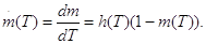 Интенсивность старения информации H(T) и h(T) определяет конкретную конфигурацию кривой h(T) или m(T). Отсюда следует, что дифференциальное уравнение кумуляции информации (далее рассматриваются относительные функции) имеет вид: