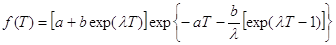 постоянстве параметра Если предположить, что параметр экспоненциального распределения имеет тенденцию изменяться во времени, которая может быть описана уравнениями тренда (например, уравнением экспоненты), то в этом случае интенсивность старения информации будет определяться двумя составляющими: константой а, не зависящей от длительности жизненного цикла полезной информации, и слагаемым, экспоненциального растущим со временем