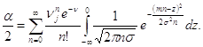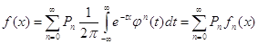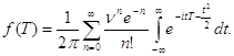 где Таким образом, плотность непредельного распределения случайного числа случайных величин представляет собой смесь распределений с плотностью fn(x) вероятность появления которых в случайной выборке (удельный вес наблюдений в общей генеральной совокупности) равна Рn. Следует заметить, что такого рода комбинации распределений удобны в методологическом плане и могут найти применение в прикладной статистике при анализе генеральных совокупностей, объединяющих в себе несколько подсовокупностей, каждая из которых, в определенном смысле, однородна и описывается основным модельным распределением, например, нормальным, экспоненциальным и т.д. В рассматриваемой проблеме подсовокупности могут описывать статистику промежутков между квантами информации. В качестве примера рассмотрим распределение суммы пуассоновского числа стандартных нормальных величин. Характеристическая функция стандартного нормального распределения