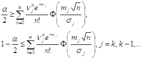 Очевидно, что плотность распределения (2.34), а точнее параметры v, m и s, зависят от объема выборок случайных величин {Zj}, j=1,…,k; j=1, k=1, k-1 и т.д. Последовательно от этапа к этапу анализируя ретроспективную информацию, можно построить семейство плотностей распределения fj(z) (j=k, k-1, …). Задачу отбраковки устаревшей информации в этом случае сводится к решению последовательного ряда задач проверки статистических гипотез о принадлежности контрольного значения параметра Z0 генеральной совокупности, описываемой законом распределения с плотностью (2.34). При этом следует учесть, что в силу проведенной схематизации процесса Z0=0. Тогда, задаваясь уровнем значимости a и учитывая симметричный характер закона распределения (2.34), можно найти такое значение индекса j, при котором выполнилось бы одно из следующих неравенств