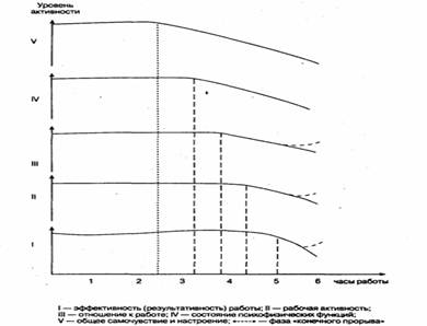 Реферат: Психология трудаРеферат: Психология трудаПлан 1. План трудовой деятельности 2. Взаимосвязь между психически функциональными состояниями и деятельностью Литература 1. План трудовой деятельности Общепринята следующая классификация основных форм трудовой деятельности: Труд, требующий большой мышечной активности Имеет место при отсутствии механизированных средств для работы (труд сталевара, грузчика, овощевода и т. д.). Развивает мышечную систему, стимулирует обменные процессы в организме, но в тоже время социально не эффективен, имеет низкую производительность, потребность в длительном отдыхе. Механизированная форма труда Требует специальных знаний и двигательных навыков, в работу включаются мелкие мышцы рук, ног, которые обеспечивают скорость и точность движения. Однако, однообразие простых действий, малый объём воспринимаемой информации приводит к монотонности труда. Труд, связанный с автоматическим и полуавтоматическим производством Недостатки: монотонность, повышенный темп и ритм работы, отсутствие творческого начала, так как обработкой предметов занимается механизм, а человек выполняет простые операции по обслуживанию станков Конвейерный труд Отличается дроблением процесса на операции, заданным темпом и ритмом, строгой последовательностью операций. Главный недостаток - монотонность, приводящая к преждевременной усталости и быстрому нервному источению. При однообразных повторяющихся раздражителях в корковой деятельности преобладает процесс торможения, что ведёт к рассеиванию внимания, падению скорости реакции, быстрому утомлению. Труд, связанный с управлением производственными процессами и механизмами Человек выступает в роли оператора, и чем менее автоматизирован процесс управления, тем больше его участие. Умственный труд Восприятие и переработка большого количества информации с включением памяти, внимания, активизация процесса мышления. Формы умственного труда: Операторский - контроль за работой машин. Отличается высокой ответственностью и нервно-эмоциональным напряжением. Управленческий (руководители предприятия). Характеризуется большим ростом объёма информации при нехватке времени для её переработки, большой личной ответственностью за принятые решения, стрессовыми и конфликтными ситуациями. Творческий труд (научные работники, преподаватели, писатели, конструкторы). Наиболее сложная форма, так как требует большого объёма памяти, напряжения, внимания. Приводит к повышению нервно-эмоционального напряжения, тахикардии, повышению кровяного давления, изменению ЭКГ и другим сдвигам со стороны вегетативных функций. Труд преподавателей и медицинских работников - постоянный контакт с людьми, повышенная ответственность, частая нехватка времени и информации для принятия правильного решения, что приводит к высокому нервно-эмоциональному напряжению. Труд учащихся и студентов. Необходима концентрация памяти, внимания. Присутствуют стрессовые ситуации (экзамены, зачёты). Как видно, многообразие форм трудовой деятельности сводится к двум основным. Физический труд - характеризуется большой нагрузкой на опорно-двигательный аппарат и функциональные системы (сердечно - сосудистую, нервно - мышечную, дыхательную и др.). Развивает мышечную систему, стимулирует обменные процессы, но из-за н