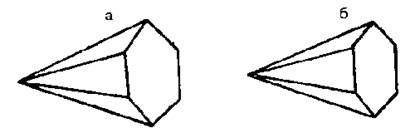 Рисунок 1. Целостное «стереоскопическое» изображение объемного предмета при пассивном осязании: А) – оригинал; Б) – рисунок испытуемого. На рисунке 1 представлен образ пассивного осязания, в котором имеет место стереоэффект, охватывающий уже структуру самого объекта (эксперименты Л. М. Веккера). Здесь в образе охвачен рельеф всей поверхности предмета. В общем случае, однако, можно полагать, что если рельеф тела превышает определенную меру сложности, соответствующую возможностям пассивного осязания, то стереогаптический (то есть стереоскопический эффект, полученный с помощью осязания. – Прим. ред.) образ данного тела остается за пределами диапазона максимальной адекватности воспроизведения рельефа. Если пассивное осязание не всегда может дать адекватное отражение рельефа, поскольку здесь охват контура осуществляется за счет движения объекта, и отсутствуют средства фиксации начала отсчета, то эти ограничения снимаются в естественном ходе процесса активного осязания. Результаты его исследований (эксперименты Л. М. Веккера) показывают, что уже в актах мономануального ощупывания стереогаптический эффект восприятия более сложных фигур (например, шестигранной призмы) достигает максимальной адекватности (рис. 2).