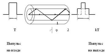 Это приводит к тому, что форма выходного импульса по сравнению со входным импульсом искажается, импульс расширяется во времени (рис.1). Такое явление называется межмодовой (модовой) дисперсией