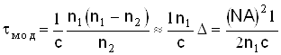 за счет модовой дисперсии практически отсутствует, т.к. составляет Тем не менее расчет межмодовой дисперсии d в градиентных световодах производится по формуле: