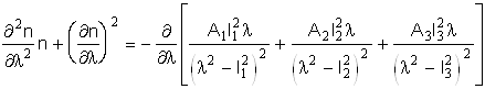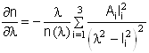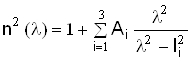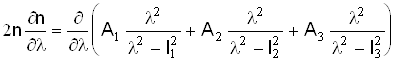Первый член приведенного выражения определяется дисперсией материала, второй - волноводной дисперсией. Для определения материальной дисперсии воспользуемся трехчленной дисперсионной формулой Селмейера, которая характеризует спектральную зависимость показателя преломления стекол в диапазоне 0,6 - 2 мкм