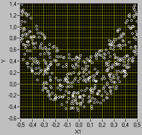 Рис. 2 Пусть случайная величина Y = 4X12 + X2, где X1 и X2 – независимые случайные величины, равномерно распределенные в интервале (– 1/2, 1/2). Ясно, что Y связана с X1 статистической зависимостью (см. рис. 2). Однако корреляционный момент