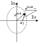 Рис. 7 Его передаточная функция в стандартной форме K(z) = Импульсная характеристика определяется как обратное Z – преобразование от передаточной функции: g[n] = b0a1n ( 4) Диапазон возможных значений коэффициента a1 ограничивается устойчивостью фильтра. Для устойчивости АР-фильтра требуется, чтобы полюса его передаточной функции находились внутри окружности единичного радиуса. Полюс находится приравниванием нулю знаменателя передаточной функции: z – a1 =0. Полюс z1 = a1, и требование устойчивости фильтра | a1| < 1 или -1 < a1 < 1. При положительном a1 импульсная характеристика, как следует из ( 4), является монотонно спадающей функцией, и корреляционная функция тоже будет монотонно спадающей. При отрицательном а1 импульсная характеристика становится колебательной, и корреляционная функция будет колебательной затухающей с периодом колебаний равным двум интервалам дискретизации. Рассмотрим, как будет изменяться АЧХ фильтра, а следовательно, и энергетический спектр ( 1) генерируемой последовательности, при изменении а1. Комплексная частотная характеристика получается из передаточной функции К(z) подстановкой z = ejωΔt. Амплитудно-частотная характеристика К(ω) = |b0ejωΔt/(ejωΔt – a1)| = b0/|ejωΔt – a1|. Она обратно пропорциональна модулю разности векторов ejωΔt и a1. Как видно из рис. 8 а), при положительном a1 модуль разности векторов будет изменяться от наименьшего значения при ω = 0 до наибольшего значения при ωΔt = π. Значит, АЧХ, а следовательно, и энергетический спектр случайной последовательности, будет иметь подъем в области низких частот. При отрицательных a1, наоборот, подъем будет в области верхних частот.
