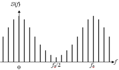 где fk = k/N*Δt – частота спектральной составляющей, Δt – временной интервал между соседними отсчетами случайного процесса, или интервал дискретизации. Из приведенного выражения следует, что энергетический спектр случайной последовательности является дискретным и периодическим (рис. 4). Он содержит гармоники частоты f1 = 1/N*Δt. Это самая низкая частота спектра, так как за время, равное длительности случайной последовательности N*Δt, укладывается только один период колебания этой частоты.